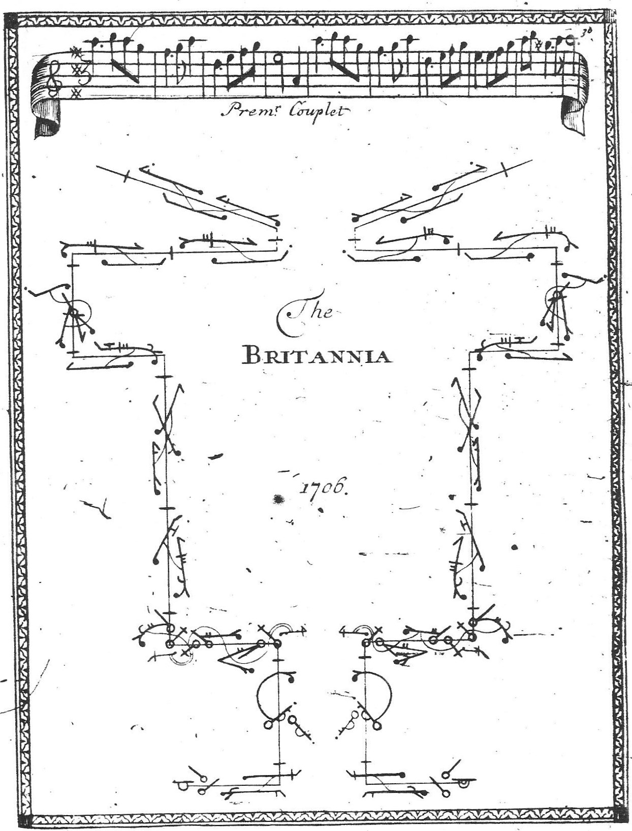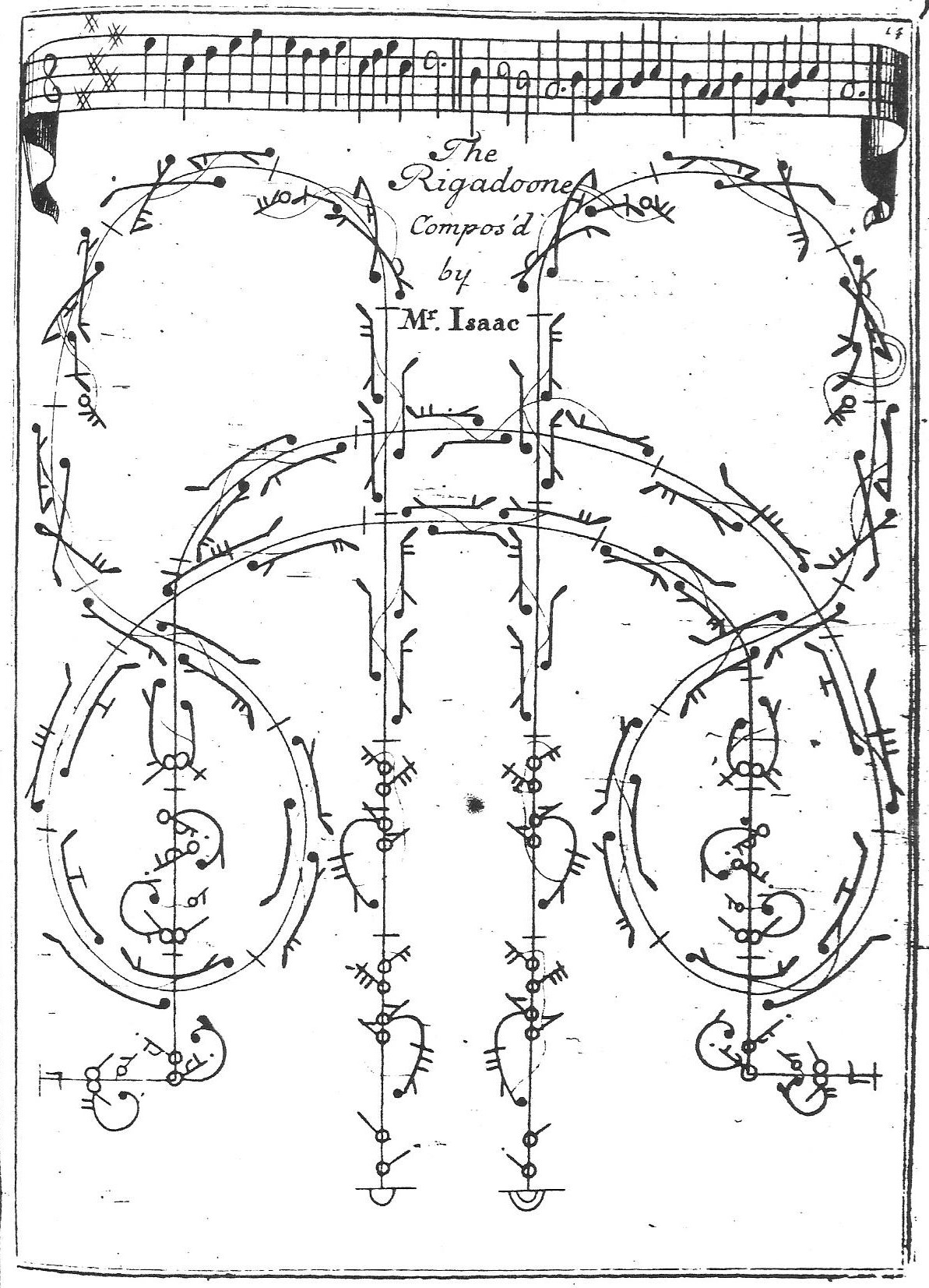 The Prince of Wales’s Saraband was one of a series of dances created by Anthony L’Abbé and published in Beauchamp-Feuillet notation by Edmund Pemberton following L’Abbé’s appointment by George I as royal dancing master around 1715. The title page makes clear that this was one of the dances choreographed by L’Abbé to celebrate the birthday of Queen Caroline, wife of King George II and mother of the Prince.