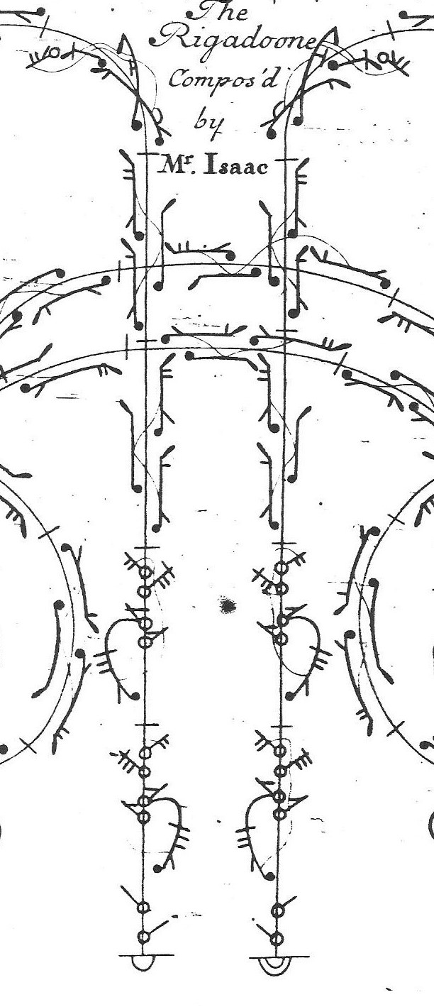 The Prince of Wales’s Saraband opens with a figure based around a temps de courante à deux, in which a temps is followed by a temps de courante, first on the inside foot and then on the outside foot. The notation indicates that the dancers turn their bodies towards the pointing foot on each temps, turning back towards the presence on each temps de courante. Did this mean that they turned their heads the same way or did they look steadfastly forward?