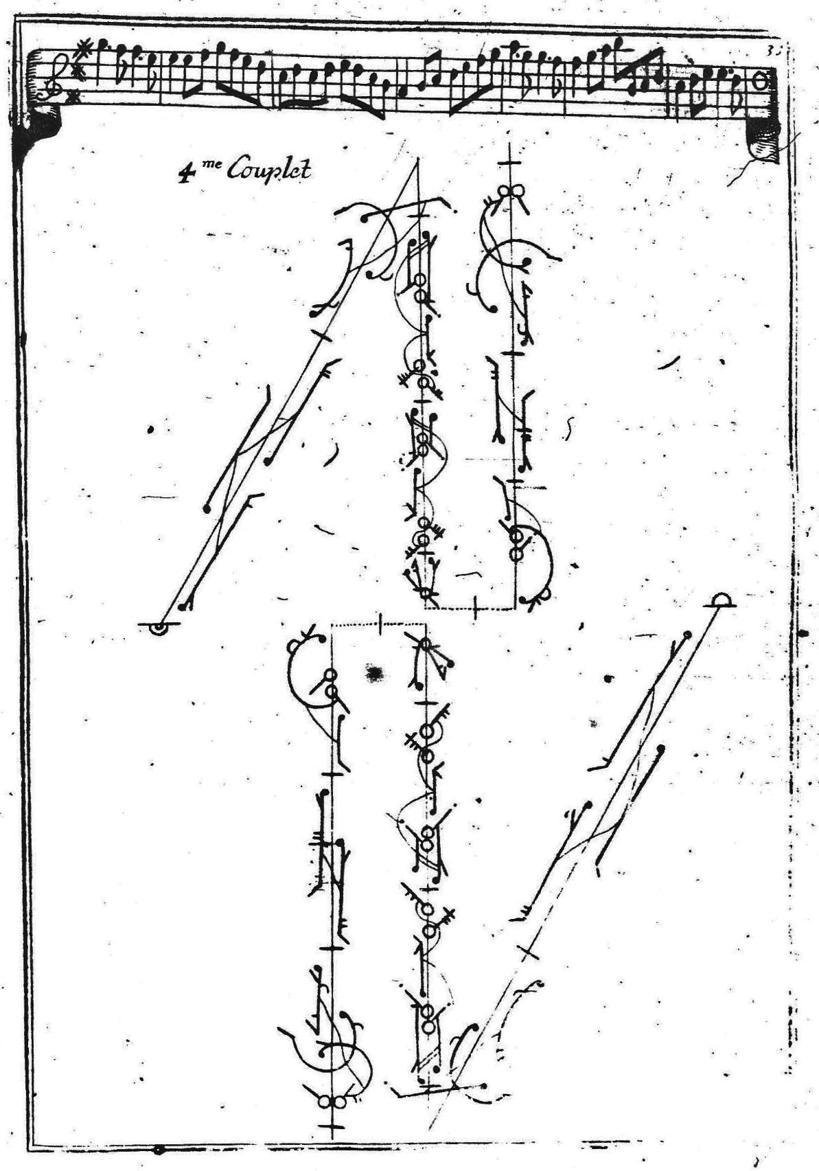 Closer analysis of the notation reveals that this duet has some complexities and that it demands immaculate style and technique if it is to make an impact. Reconstructing the dance raises a number of questions about those aspects that are not notated – in particular arm movements and the use of the head. In all of these notated ballroom dances, the attention of the two performers seems to be divided between the presence (the guest of honour), each other and the surrounding audience. How much do we really know about the conventions that governed the performance of such dances, either at court or on stage, which should inform our dance reconstructions?