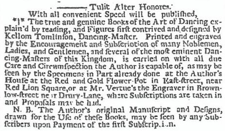 Neither passage directly answers my questions, although Tomlinson refers to ‘gentle or easy Rising’ in the demi-coupé. In the chapter preceding that on the minuet step, ‘Of the Manner of making half Coupees’, Rameau tells his reader ‘good Dancing very much depends on this first Step, since the knowing how to sink and rise well makes the fine Dancer.’ (The Dancing-Master, Chapter XX, p. 42). I would need to look further and more closely at what both Rameau and Tomlinson say about other steps before reaching firm conclusions about how to perform the basic pas de menuet.